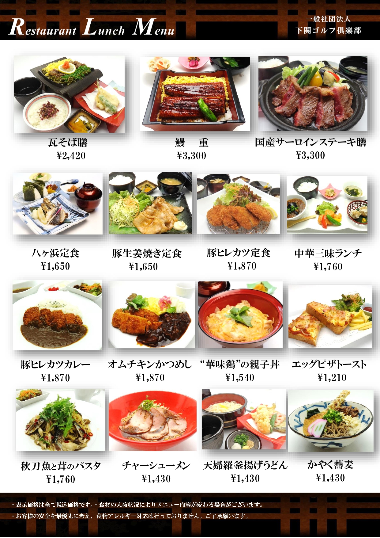 レストランメニュー